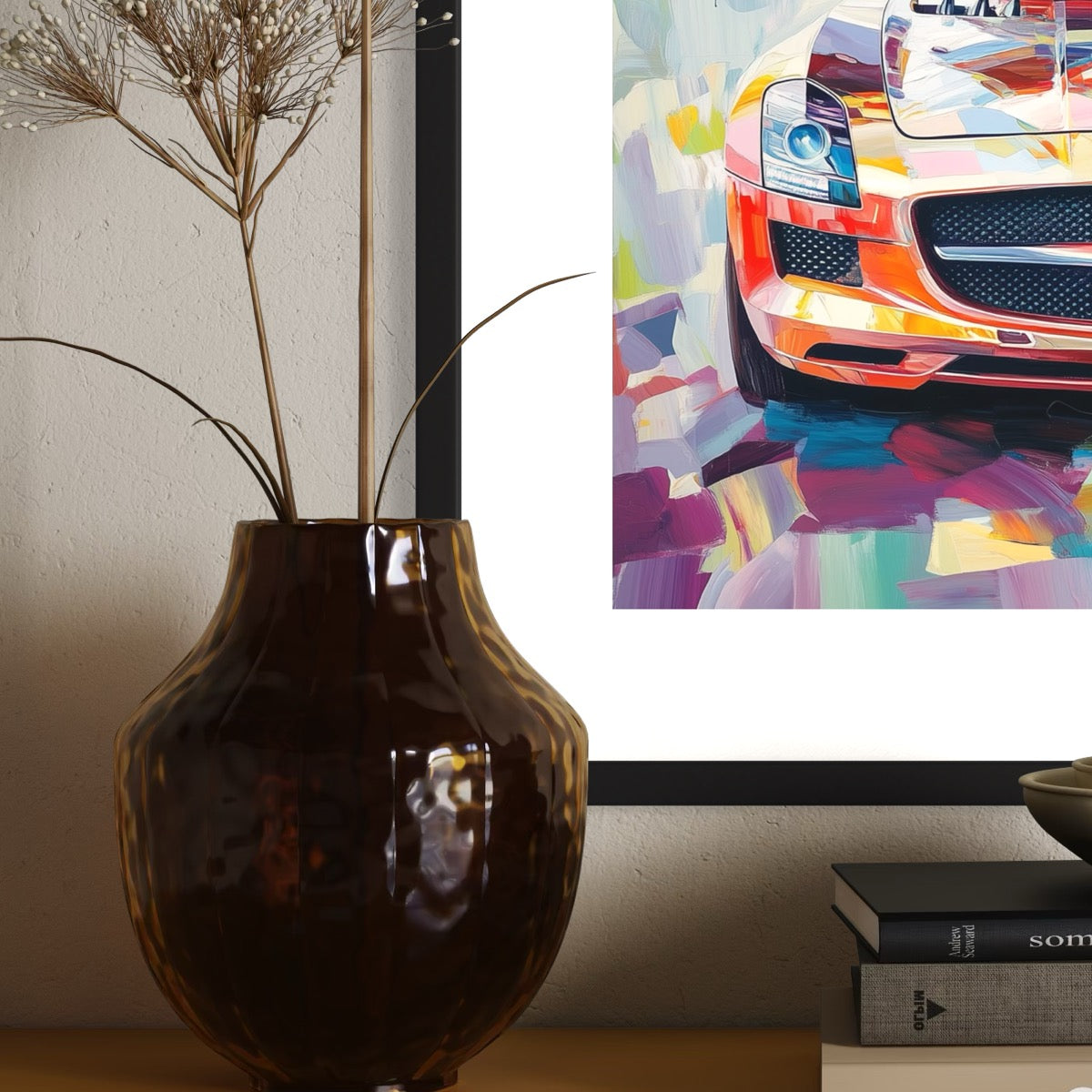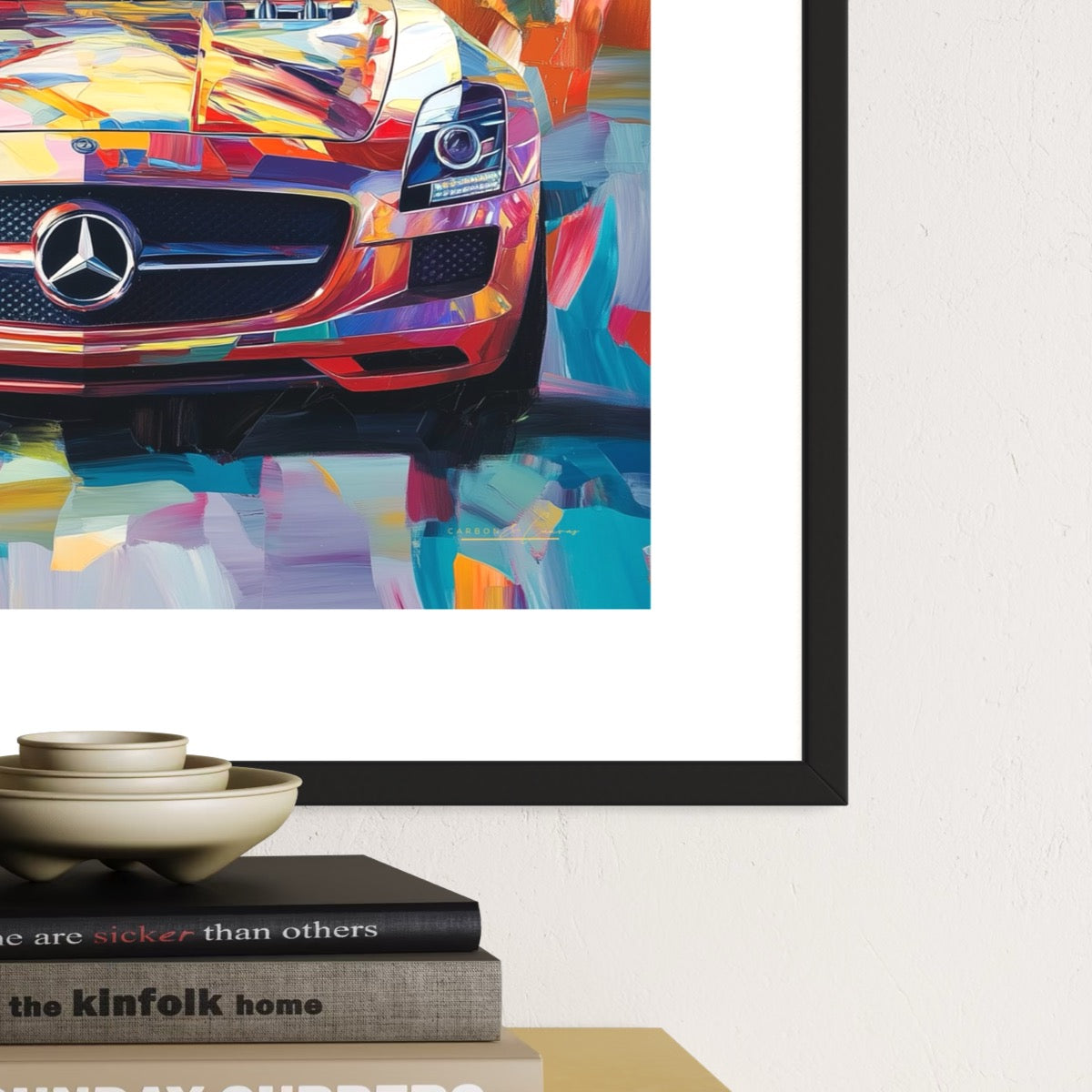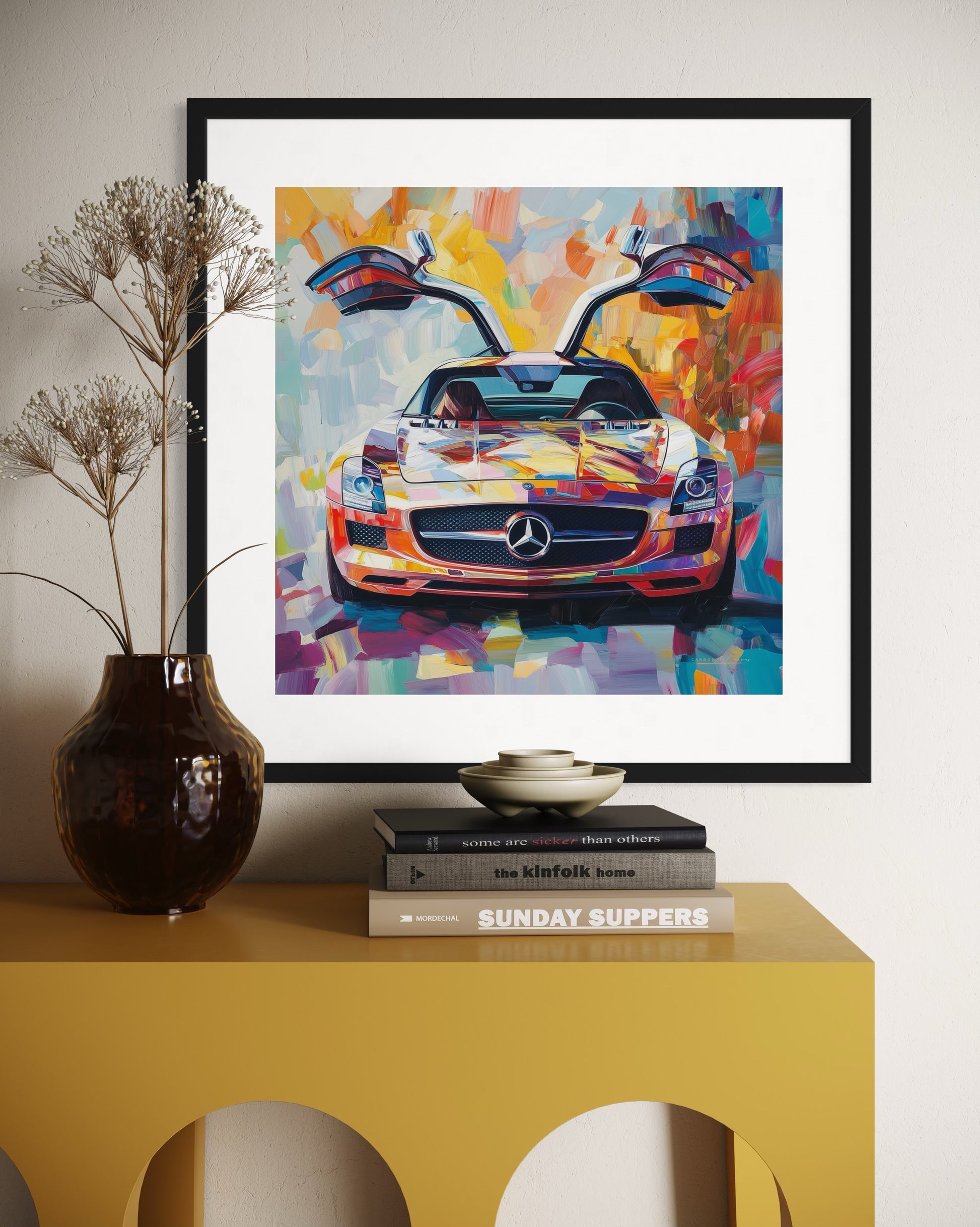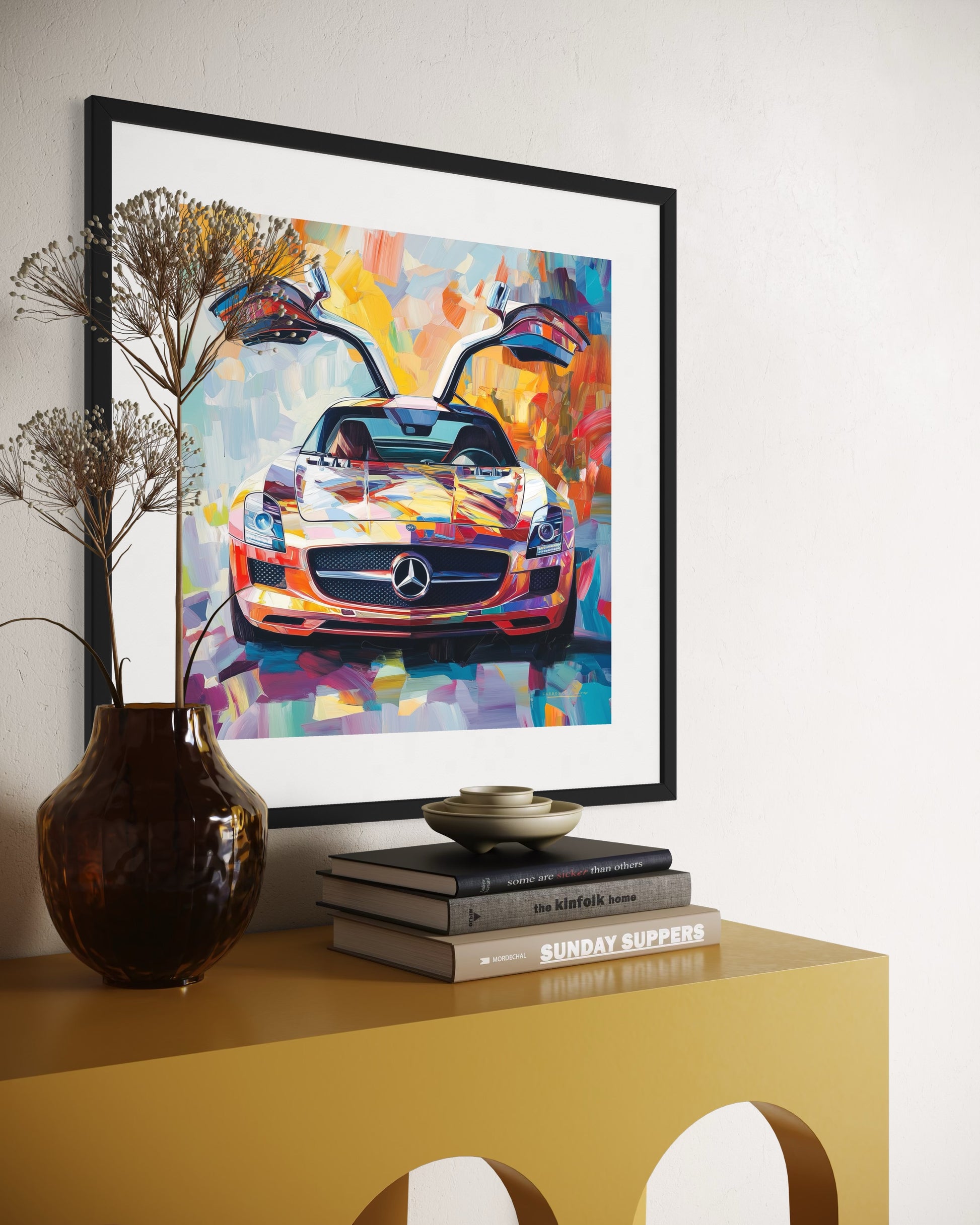 Step out of the gullwing with this bright automotive art piece. Presented on museum quality part gloss, part matte paper, this SLS art print delivers a sharp, exquisite finish and would be a perfect addition to your room or home office.